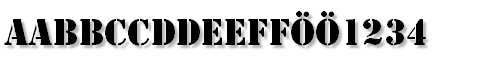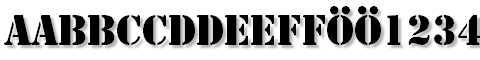 StencilStd  © 1987, 1990, 1994, 2001, 2002 Adobe Systems Incorporated. All rights reserved. Please refer to the Copyright section for the font trademark attribution notices. Version 2.025;PS 002.000;hotconv 1.0.50;makeotf.lib2.0.16970 |  Stephen Regular  Copyright 1990-1993 FontBank, Inc.